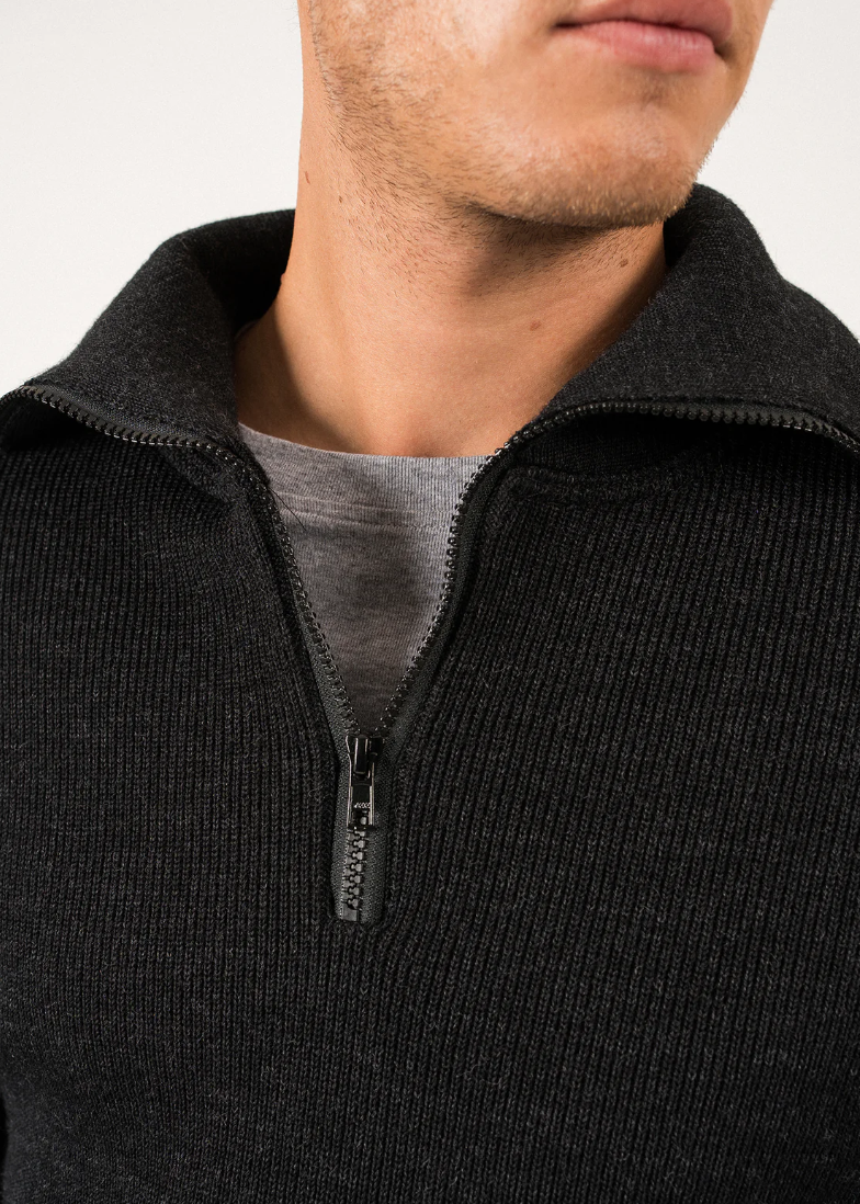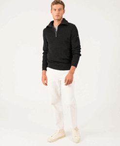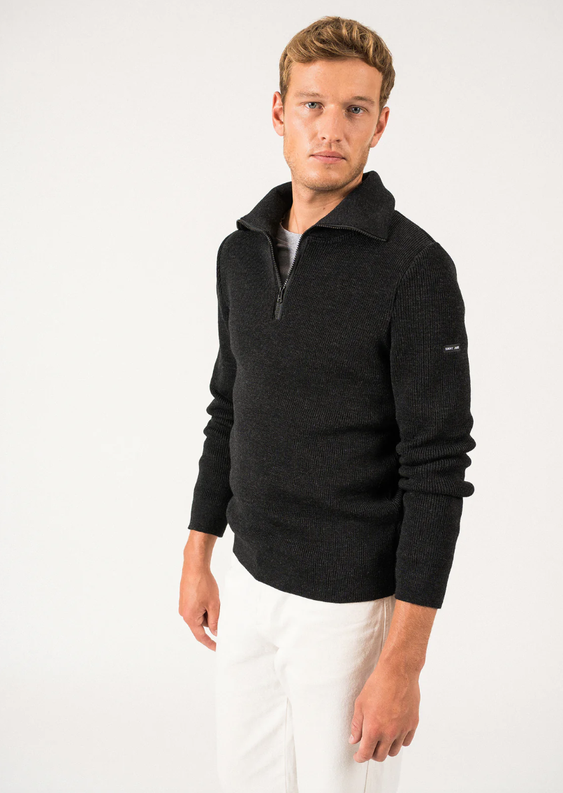 Een echte schippers trui van Saint James. De Cotentin is van 100 % zuiver scheerwol gemaakt en bevat een een kleine ritssluiting bij de kraag. De Saint James Cotentin trui is antraciet van kleur. In Frankrijk in het plaatsje Saint James worden als sinds 1850 truien gemaakt. In eerste instantie werd het alleen voor de lokale vissers gemaakt, maar al snel kwam zeelui van verre naar Saint James om zo’n onverwoestbare trui te kopen. Tot op de dag van vandaag is de kwaliteit onovertroffen.